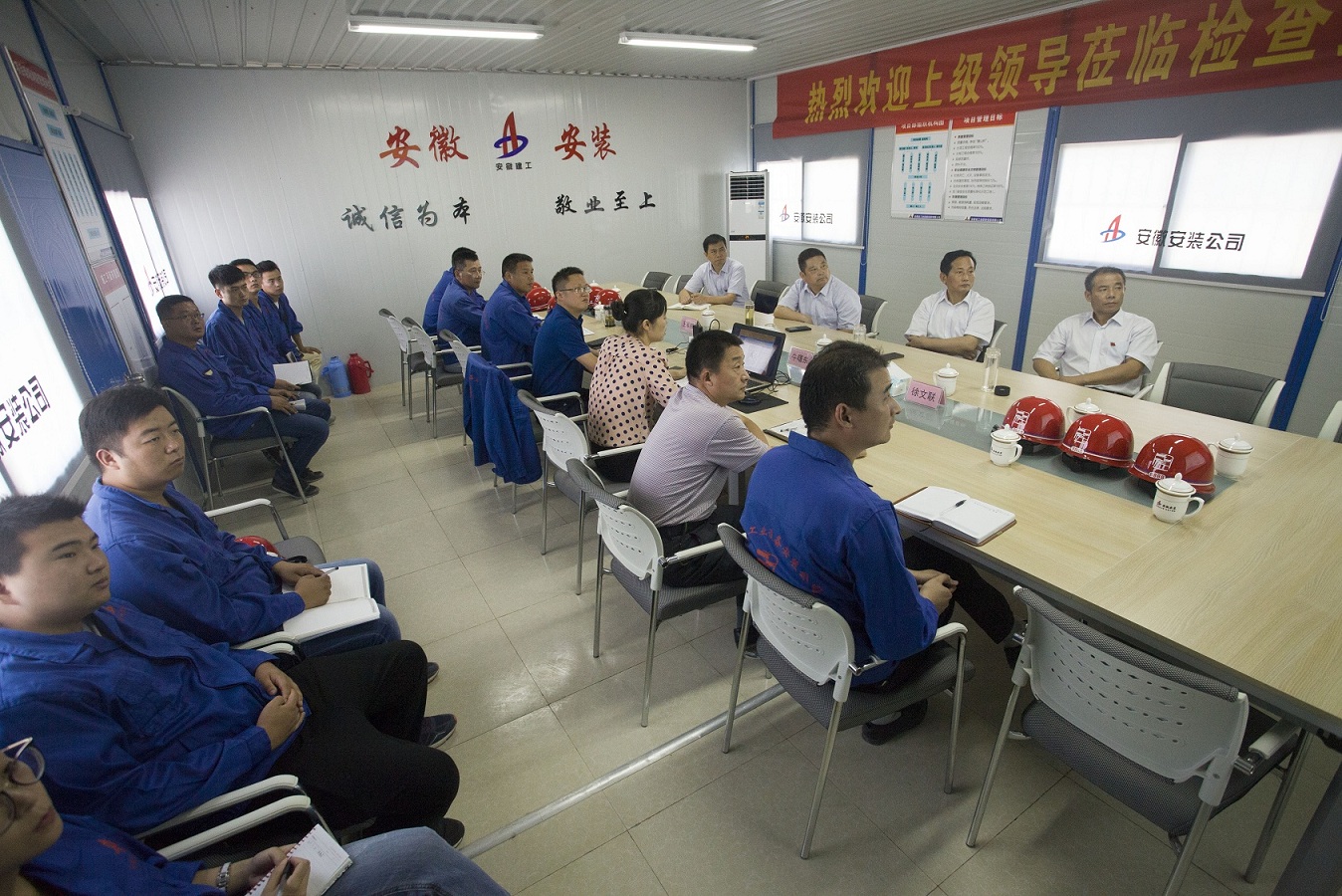 炎炎夏日送清涼,絲絲關(guān)愛寄深情。為確?;鶎右痪€職工安全度夏,7月21日上午,集團(tuán)公司黨委副書記牛曙東冒著高溫酷暑,在黨委工作部主任徐文聯(lián),安徽安裝公司董事長、總經(jīng)理王軍邦,紀(jì)委書記、工會主席李寬旭的陪同下,到安徽安裝公司蚌埠卷煙廠項目,為堅守在高溫下工作一線的干部員工送去了“清涼”和集團(tuán)黨委親切的慰問,同時還為黨員干部、入黨積極分子上了一堂別開生面的黨課。