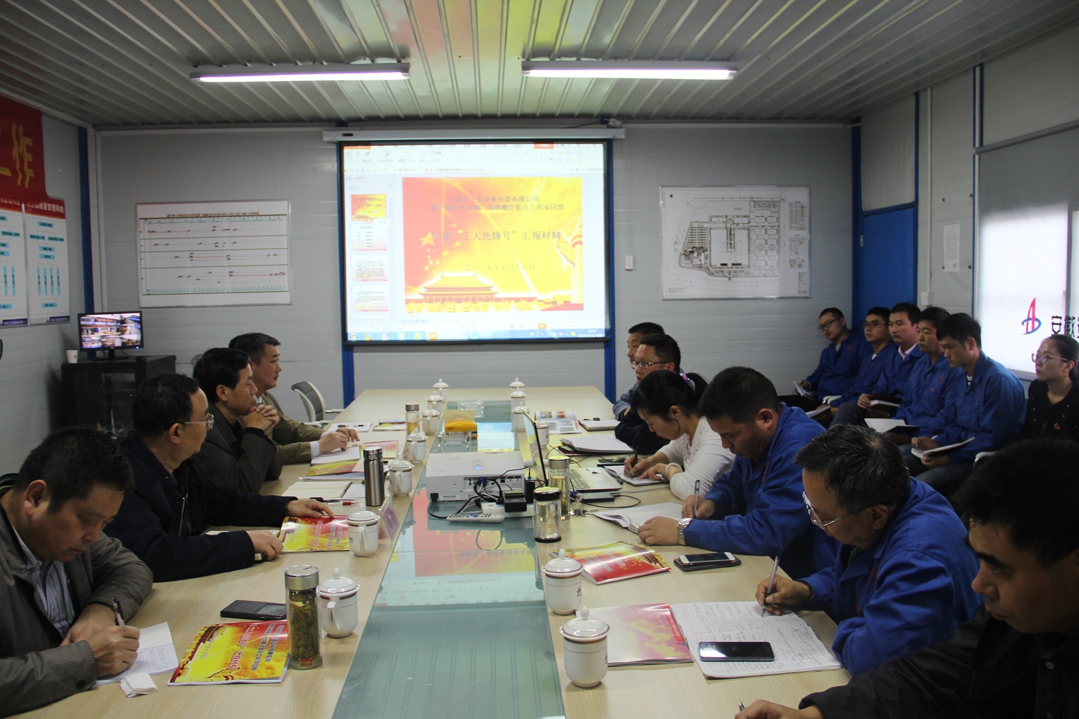 項目經(jīng)理趙銘亮在會上發(fā)言,以創(chuàng)建“工人先鋒號”為契機(jī),開展一流工作,狠抓工程進(jìn)度和安全生產(chǎn),嚴(yán)把工程質(zhì)量和材料采購關(guān),管控項目成本和資金;提供一流服務(wù),不斷提高服務(wù)質(zhì)量,讓客戶滿意,爭取在蚌埠卷煙廠項目承接任務(wù)超億元;創(chuàng)造一流業(yè)績,開展提質(zhì)增效活動,確?!包S山杯”、爭創(chuàng)“魯班獎”;打造一流團(tuán)隊,努力打造學(xué)習(xí)型組織,團(tuán)結(jié)協(xié)作和諧共進(jìn)的團(tuán)隊。