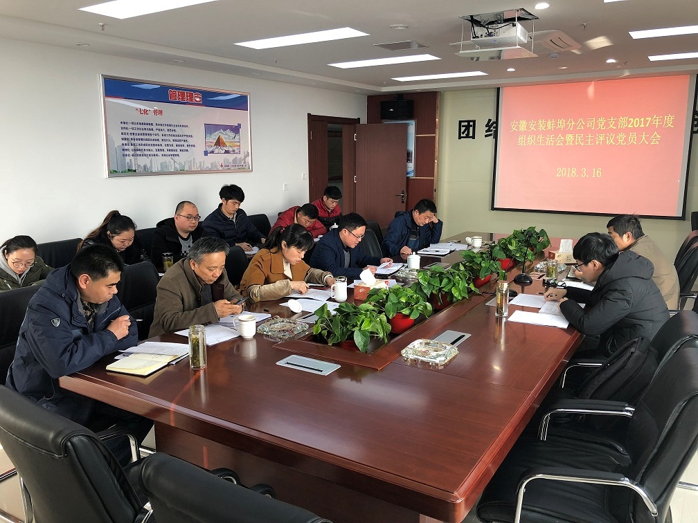 3月16日下午,蚌埠分公司黨支部召開了2017年度專題組織生活會(huì)暨民主評(píng)議黨員大會(huì),會(huì)議由分公司黨支部書記洪軍主持。公司副總經(jīng)理劉安俊、公司黨委辦公室楊俊輝以及分公司全體黨員參加會(huì)議。