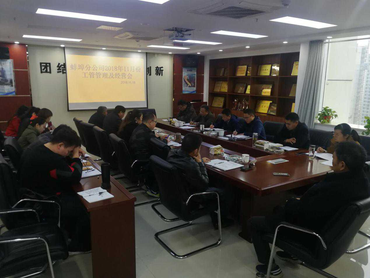 2018年11月18日下午,在蚌埠分公司會議室召開11月份工程管理及經(jīng)營工作會議。分公司領(lǐng)導(dǎo)班子成員、機(jī)關(guān)各部門負(fù)責(zé)人及項(xiàng)目經(jīng)理、聯(lián)營合作單位負(fù)責(zé)人參加會議,會議由分公司副經(jīng)理張漢軍主持。
