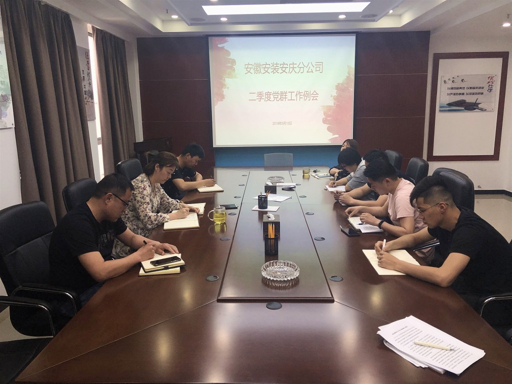 5月13日下午,安慶分公司召開(kāi)第二季度黨群工作例會(huì),分公司黨群工作領(lǐng)導(dǎo)、部門(mén)負(fù)責(zé)人及相關(guān)工作人員參加了會(huì)議,會(huì)議由綜合辦主任董玉娟主持。