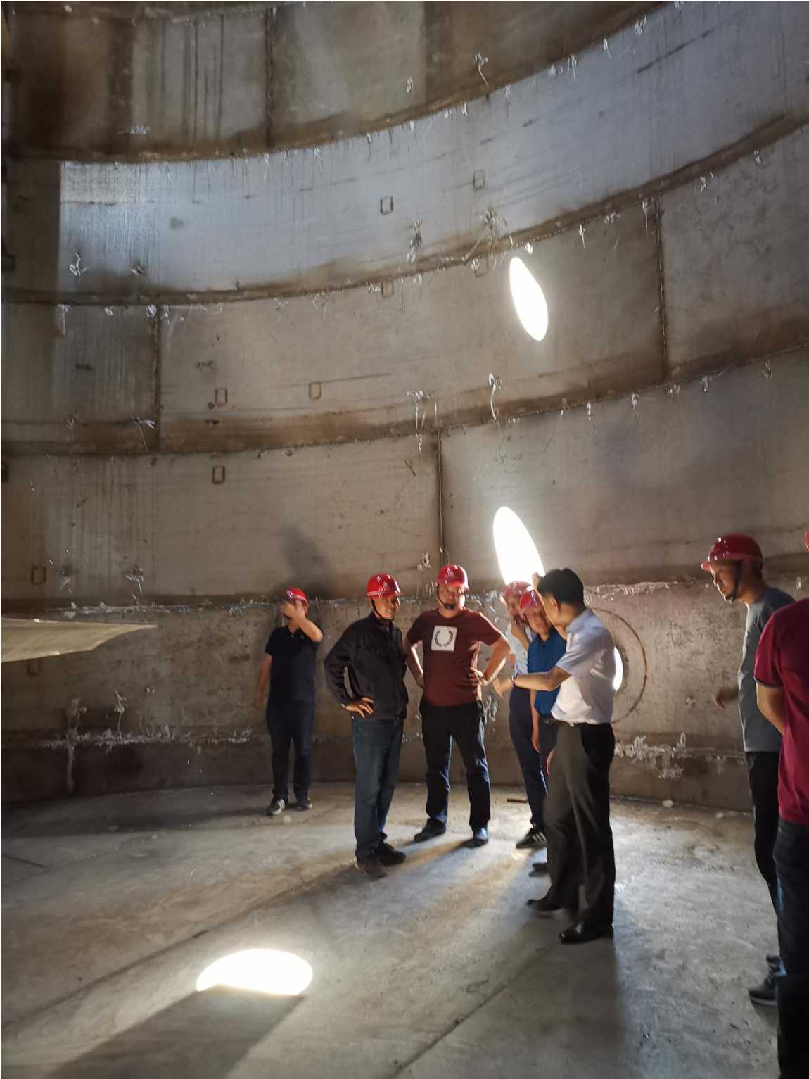 出發(fā)前,合肥分公司經(jīng)理趙永峰作了動(dòng)員強(qiáng)調(diào),他指出,本次觀摩工業(yè)項(xiàng)目是我們學(xué)習(xí)的榜樣,每一位同志都要珍惜這次難得的學(xué)習(xí)機(jī)會(huì),到工地后要實(shí)地細(xì)致觀察,認(rèn)真聽(tīng)取講解,設(shè)身處地思考,力爭(zhēng)取得實(shí)效。上午全體人員到達(dá)宿州中糧項(xiàng)目工地后,受到了蚌埠分公司領(lǐng)導(dǎo)和項(xiàng)目部全體干部員工的熱烈歡迎,分公司經(jīng)理趙銘亮、生產(chǎn)副經(jīng)理張漢軍親自擔(dān)任現(xiàn)場(chǎng)講解。參觀隊(duì)伍在兩位經(jīng)理的帶領(lǐng)下,深入現(xiàn)場(chǎng)分別參觀了乙醇罐體群、發(fā)酵罐體群、以及冷水機(jī)組、工藝管線的安裝現(xiàn)場(chǎng),兩位經(jīng)理結(jié)合現(xiàn)場(chǎng)工程實(shí)體從本項(xiàng)目技術(shù)重難點(diǎn)、施工工藝、安全管理等方面向合肥分公司的同事們進(jìn)行一一的講解。在施工現(xiàn)場(chǎng),大家結(jié)合自身專業(yè)實(shí)際尋找切入點(diǎn)針對(duì)性地進(jìn)行觀摩學(xué)習(xí),唯恐落下一個(gè)可以學(xué)習(xí)的機(jī)會(huì),詳細(xì)記錄現(xiàn)場(chǎng)優(yōu)秀的施工做法,針對(duì)有疑問(wèn)的地方及時(shí)向相應(yīng)專業(yè)技術(shù)負(fù)責(zé)人詢問(wèn)解決辦法。