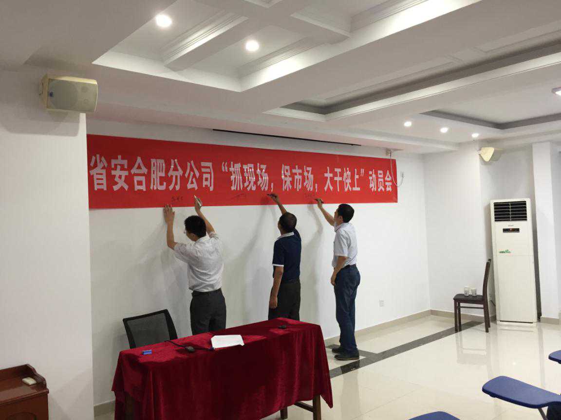 最后全體參會人員在宣傳橫幅上進行了簽字,正式啟動合肥分公司“抓現(xiàn)場、保市場、大干快上”生產(chǎn)主題活動。