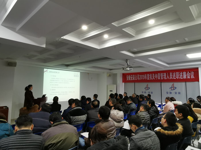 1月7日上午,安徽安裝公司召開2019年度機(jī)關(guān)中層管理人員述職述廉會議。公司領(lǐng)導(dǎo)班子成員、機(jī)關(guān)中層管理人員、分公司黨政負(fù)責(zé)人、機(jī)關(guān)部門員工代表共60余人參加了此次會議。會議由公司黨委書記、董事長胡六中主持。