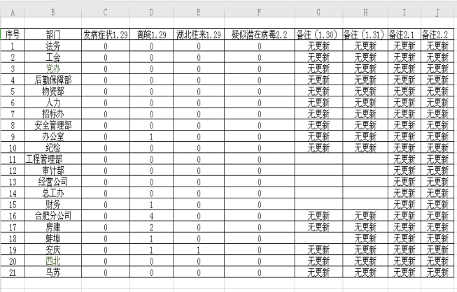 四是日報制度。自1月26日起實(shí)行日報制度,各分公司、各部門認(rèn)真做好登記,確保信息及時準(zhǔn)確,形成春節(jié)休假期間上下聯(lián)動、聯(lián)防聯(lián)控的疫情防控工作格局。