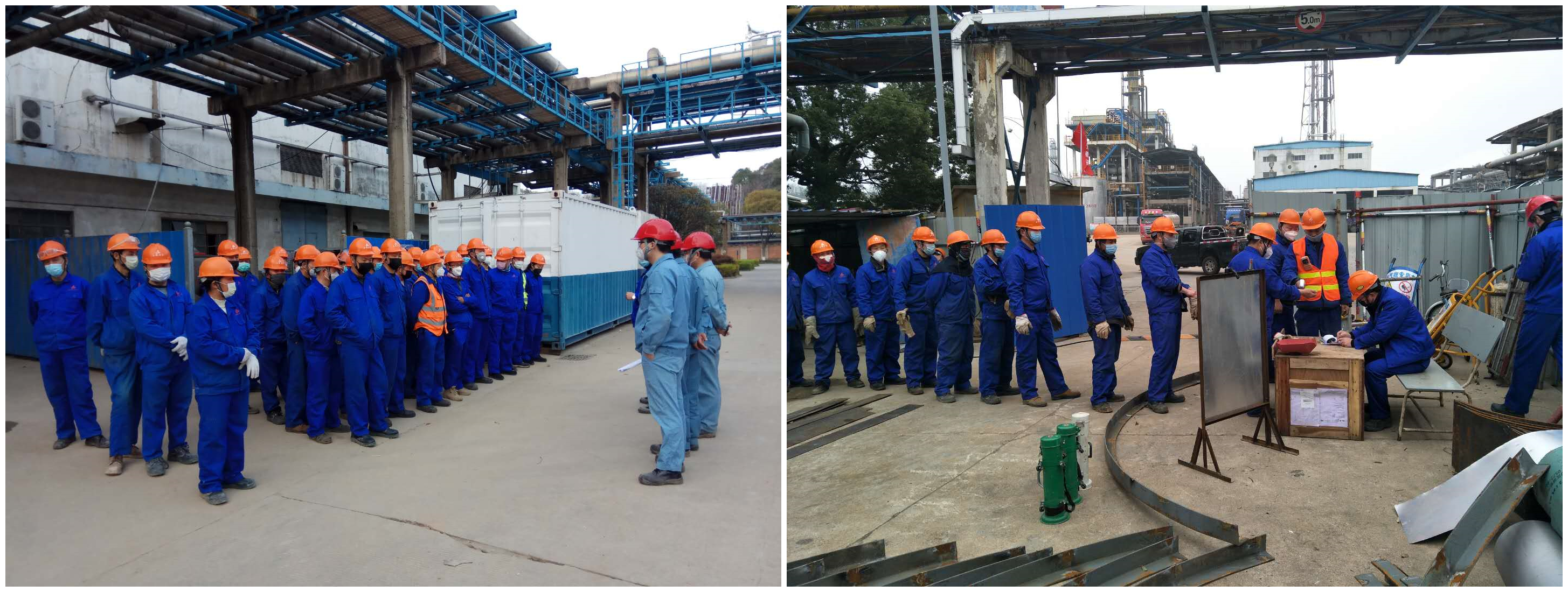此次復(fù)工建設(shè)的項目共有五項:Ⅰ、Ⅱ硫磺回收裝置增設(shè)煙氣后堿洗流程項目、污染源視頻監(jiān)控項目、新增機泵密閉排放項目、柴油加氫伴熱系統(tǒng)改造項目、腈綸阻燃纖維生產(chǎn)技術(shù)改造項目。涉及到工藝、設(shè)備、電氣、儀表、監(jiān)控、土建等方面的施工,其共同特點都是以改建、擴建及檢修為主,工期要求緊、交叉及高空作業(yè)多、生產(chǎn)工藝復(fù)雜、質(zhì)量要求高,且項目基本都在老廠區(qū)內(nèi),場地一般都很狹小,存在吊裝作業(yè)難度大、安全風(fēng)險系數(shù)高等困難因素。同時在疫情期間,項目部要為全體項目人員創(chuàng)造良好的、安全的施工環(huán)境,必須做好“防疫、抗疫”防控工作,由此更加使人感覺時間緊,任務(wù)重。