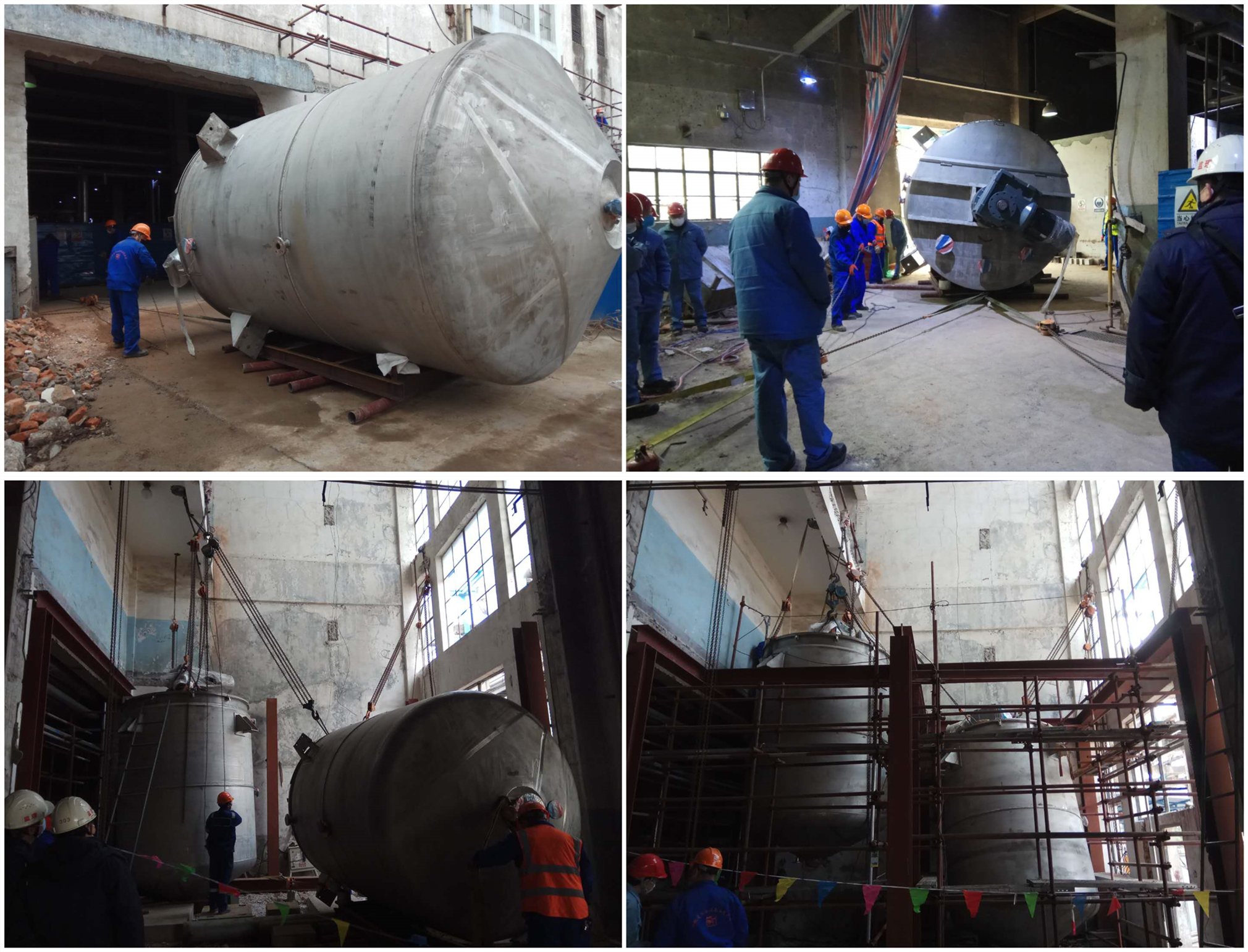 “腈綸阻燃纖維生產(chǎn)技術(shù)改造項目”的建成能夠使纖維產(chǎn)品起到防火阻燃的作用,創(chuàng)造更大經(jīng)濟效益,該項目屬于安慶石化重點項目。項目在施工過程中,由于安裝場地位于室內(nèi),運輸和起重機械無法使用,導(dǎo)致2臺12噸、2臺8噸的配料罐無法簡便運輸和吊裝進入室內(nèi)安裝,給施工人員造成極大的困擾。但方法總比困難多,經(jīng)項目部拿出具體施工方案與業(yè)主、監(jiān)理研究決定,利用最原始的滾杠搬運辦法,再以原有房梁為吊點,采用2個20噸手動葫蘆吊裝、拉運的方式順利將設(shè)備安裝就位。同時項目部合理安排人員加班加點,為后期機泵安裝及工藝管道、鋼結(jié)構(gòu)、電氣儀表、防腐保溫等配套設(shè)施施工爭分奪秒,力爭3月31日完成共混單元所有施工,為業(yè)主平穩(wěn)生產(chǎn)產(chǎn)品,創(chuàng)造效益打下堅實基礎(chǔ),也為安徽安裝的發(fā)展打下良好的口碑。