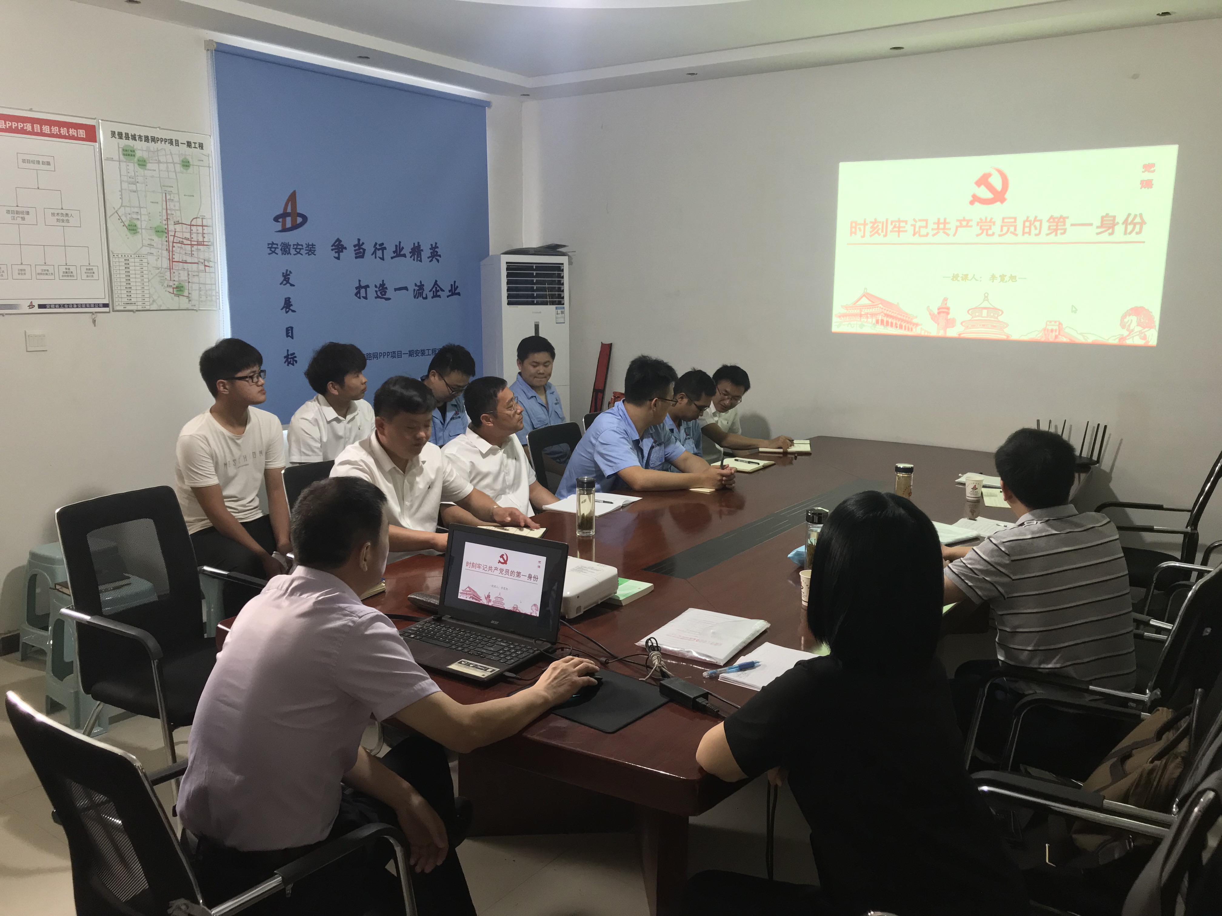 7月14日上午,公司工會主席、紀(jì)委書記李寬旭赴靈璧璧城市路網(wǎng)PPP項(xiàng)目,結(jié)合企業(yè)實(shí)際和自身感悟,以“時刻牢記共產(chǎn)黨員的第一身份”為主題,給項(xiàng)目部所有員工上了一堂精彩的黨課。