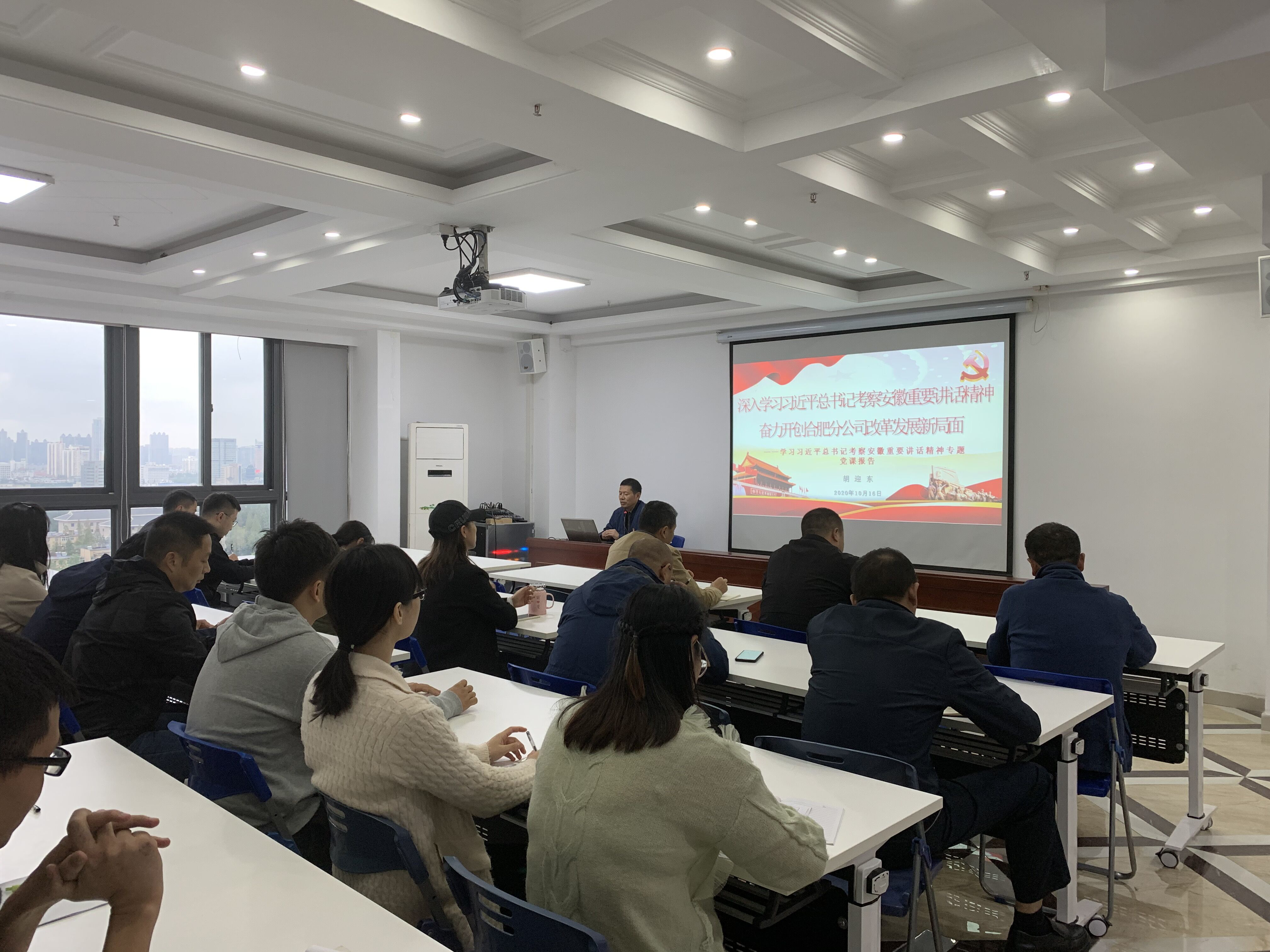 10月16日下午,合肥分公司在公司15樓職工之家舉行學(xué)習(xí)貫徹習(xí)近平總書記考察安徽重要講話精神專題黨課報告會。合肥分公司黨支部書記胡迎東在會上作了題為《深入學(xué)習(xí)習(xí)近平總書記考察安徽重要講話精神 奮力開創(chuàng)合肥分公司改革發(fā)展新局面》的黨課報告。合肥分公司黨支部全體黨員、機關(guān)及項目員工共40余人聽取了黨課報告,會議以視頻會議的方式召開。