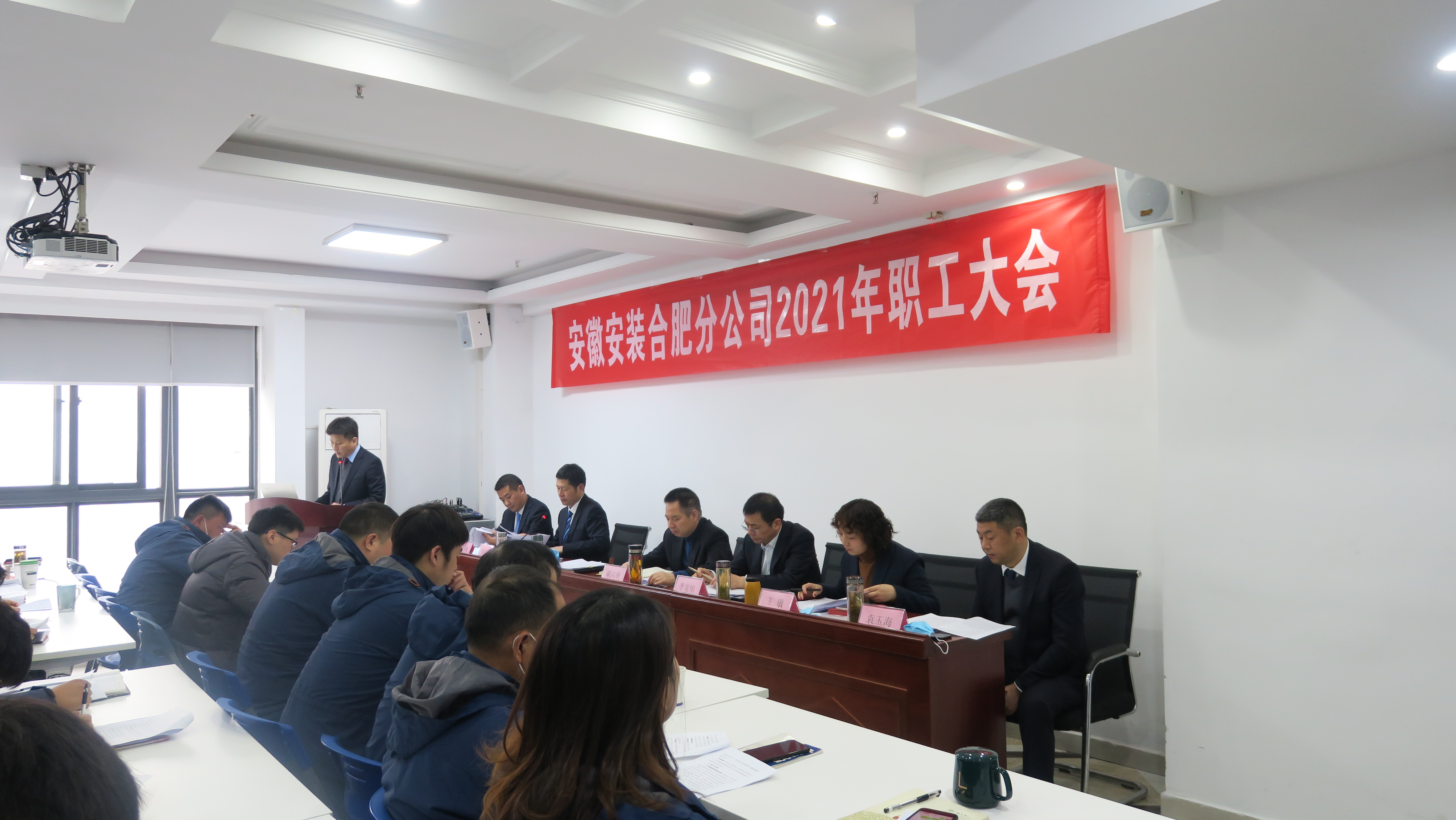 3月5日上午,安徽安裝合肥分公司在公司十五樓召開2021年職工大會。公司黨委書記、董事長胡六中,紀委書記、工會主席李寬旭出席大會,人力資源部及黨委辦公室負責同志、分公司班子成員及機關(guān)、各項目部員工參加會議。會議由分公司黨支部書記胡迎東主持。