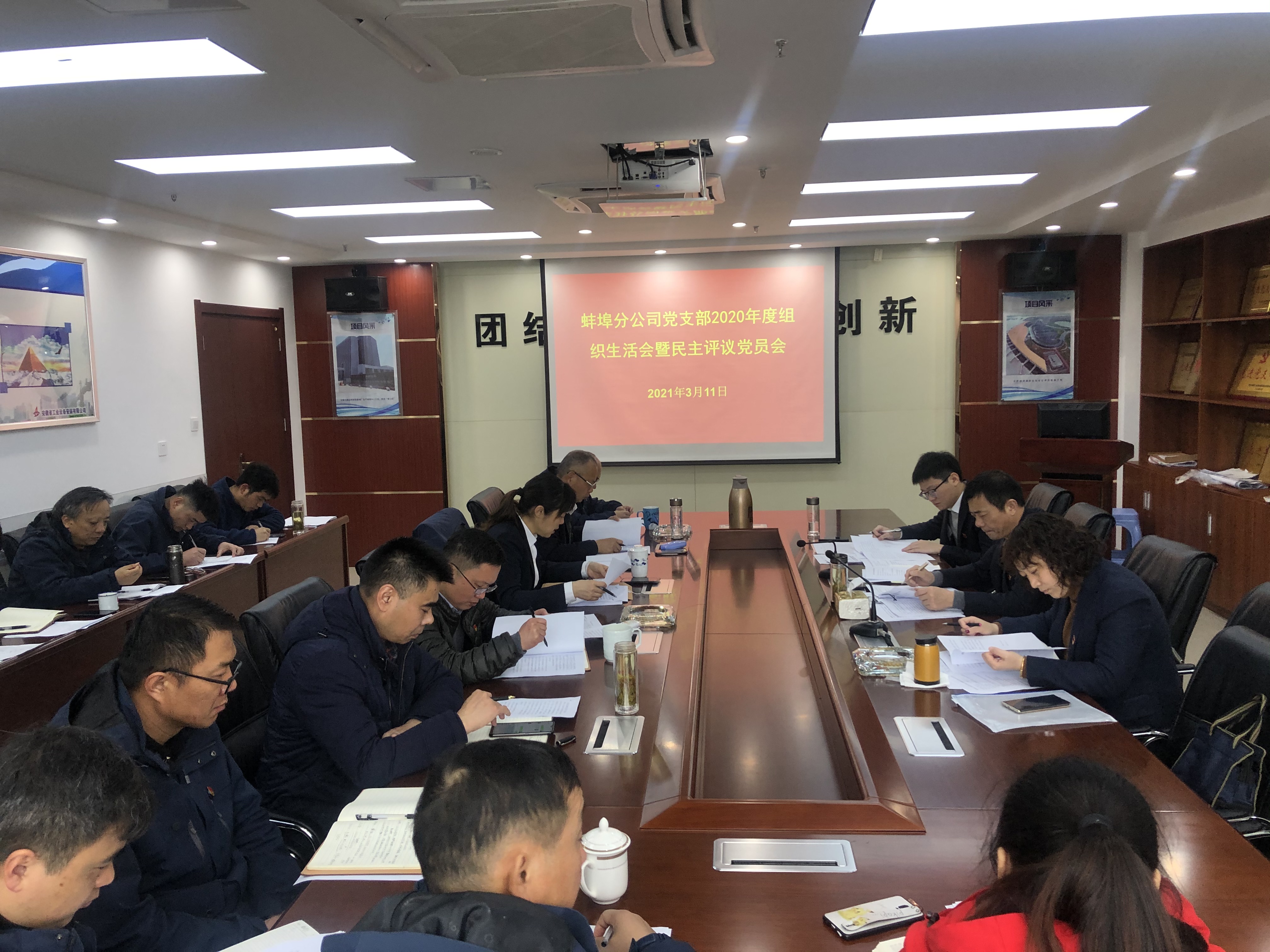 根據(jù)公司黨委工作部署,3月11日上午,蚌埠分公司黨支部召開2020年度專題組織生活會暨民主評議黨員大會。公司紀(jì)委書記、工會主席李寬旭,人力資源部經(jīng)理、機(jī)關(guān)第三黨支部書記王敏,公司黨委辦公室主管楊駿輝同志到會指導(dǎo)。會議由黨支部書記程茂麗主持,分公司全體黨員參會。