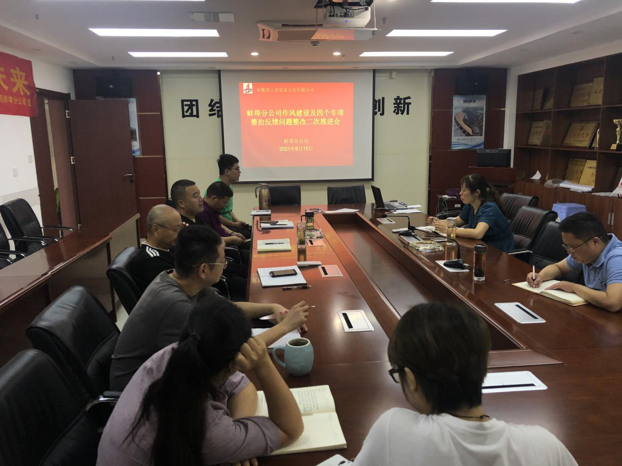 9月15日上午,蚌埠分公司黨支部召開“作風(fēng)建設(shè)及四個(gè)專項(xiàng)整治反饋問題整改二次推進(jìn)會(huì)”。分公司支委委員、班子成員、工管部、財(cái)務(wù)部、經(jīng)營(yíng)部、綜合辦等相關(guān)部門負(fù)責(zé)人、具辦人員參加會(huì)議,會(huì)議由黨支部書記程茂麗主持。