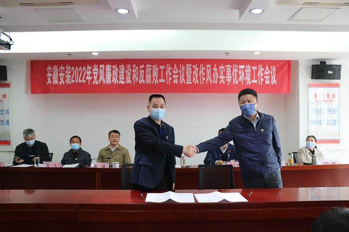 會(huì)上傳達(dá)學(xué)習(xí)了習(xí)近平總書(shū)記在十九屆中央紀(jì)委六次全會(huì)上的重要講話(huà)精神、省紀(jì)委十一屆二次全會(huì)精神、全省改進(jìn)工作作風(fēng)為民辦實(shí)事為企優(yōu)環(huán)境大會(huì)精神以及集團(tuán)黨風(fēng)廉政建設(shè)和反腐敗工作暨改作風(fēng)辦實(shí)事優(yōu)環(huán)境工作會(huì)議精神,宣讀了《安徽安裝公司改作風(fēng)、辦實(shí)事、優(yōu)環(huán)境工作實(shí)施意見(jiàn)》,公司黨委與所屬各黨支部簽訂了《黨風(fēng)廉政建設(shè)責(zé)任書(shū)》,公司中層管理人員簽訂了《廉潔自律承諾書(shū)》。會(huì)議以現(xiàn)場(chǎng)加視頻形式召開(kāi),公司機(jī)關(guān)各部門(mén)正副職、合肥地區(qū)分公司領(lǐng)導(dǎo)班子成員,外地分公司分別在主、分會(huì)場(chǎng)參加會(huì)議。