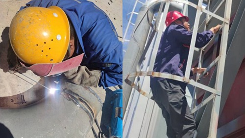 圖為甘肅西部鑫宇項(xiàng)目管道配管焊接及水箱焊接檢查場景