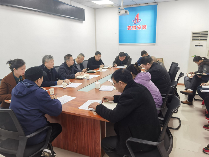 2月10日上午, 安徽安裝公司黨委書記、董事長胡六中深入房建(裝飾)分公司調(diào)研指導(dǎo)工作。公司總工程師吳繼成、相關(guān)部門負(fù)責(zé)人、分公司領(lǐng)導(dǎo)班子成員及機(jī)關(guān)全體員工參會。