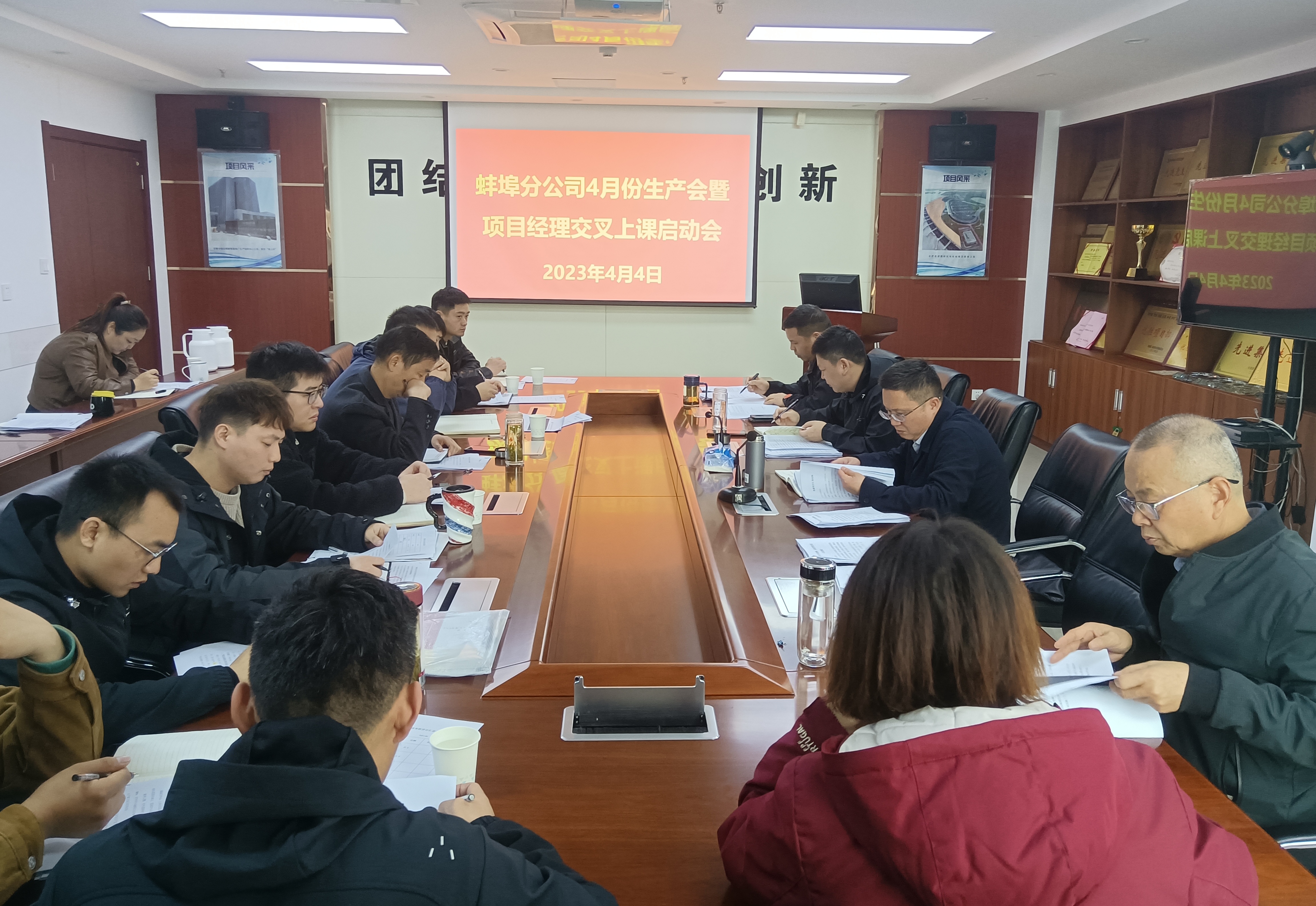 4月4日上午,蚌埠分公司召開4月份生產(chǎn)經(jīng)營會暨項目經(jīng)理交叉上課啟動會,分公司領(lǐng)導(dǎo)班子、各項目經(jīng)理、機關(guān)各部門負(fù)責(zé)人、工管部全體人員參加會議,會議由分公司副經(jīng)理郭洋主持。