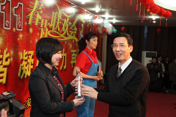 公司總經(jīng)理王軍邦代表公司黨政領(lǐng)導(dǎo)班子致新春賀詞,感謝一年來上級(jí)領(lǐng)導(dǎo)的大力支持和關(guān)懷,感謝全體員工的辛勤付出和熱愛。他說,過去的2010年里,在集團(tuán)公司的領(lǐng)導(dǎo)下,公司上下同心協(xié)力,完成產(chǎn)值10.08億元,各方面工作取得了優(yōu)異的成績(jī),生產(chǎn)經(jīng)營快速發(fā)展,管理模式逐步成型,資源整合不斷優(yōu)化,文化載體日漸豐富,品牌效應(yīng)日漸凸顯,凝聚力和執(zhí)行力不斷提高,各項(xiàng)工作穩(wěn)步邁上了新臺(tái)階,在行業(yè)內(nèi)得到了充分的肯定,實(shí)現(xiàn)了“十一五”的完美收官。在“十二五”開局之年里,我們將緊密依托集團(tuán)公司領(lǐng)導(dǎo),以提高經(jīng)濟(jì)效益為重心,團(tuán)結(jié)協(xié)作,迎難而上,銳意進(jìn)取,共創(chuàng)2011事業(yè)輝煌!