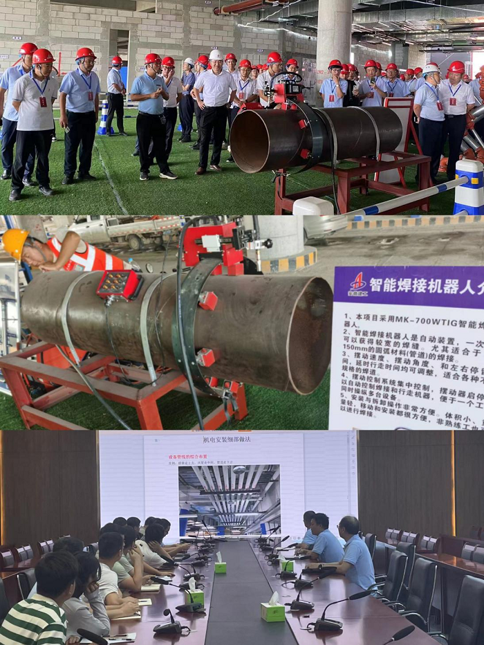 在技術(shù)攻關(guān)小組成員的帶領(lǐng)下,項目部積極響應(yīng)國家“雙碳”目標(biāo)和智能建造要求,創(chuàng)新運用智能焊接機器人代替人工焊接,確?!皹影逡贰狈€(wěn)定高效實施。技術(shù)攻關(guān)小組成員經(jīng)過數(shù)次考察試驗,結(jié)合實際引入了MK-700WTIG管道焊接小車,它體積小,重量輕,安裝、拆卸和移動方便,兼具標(biāo)準(zhǔn)角焊機簡易輕便的特點,避免了人為因素所造成的焊縫和質(zhì)量不高現(xiàn)象,可以大幅度提高焊接效率,減少材料損耗和施工返工率,進一步提高生產(chǎn)效率。技術(shù)攻關(guān)小組先后編制了智能焊接機器人操作指南和工藝視頻,有效幫助指導(dǎo)現(xiàn)場項目人員更好地掌握運用智能焊接機器人技術(shù)。通過“BIM+智能焊接機器人”方式,項目部形成了高質(zhì)量、高標(biāo)準(zhǔn)和穩(wěn)定的現(xiàn)場施工模式以及數(shù)字化、智能化的智慧管理模式,大力推動項目智能建造體系的構(gòu)建,助推項目降本增效。