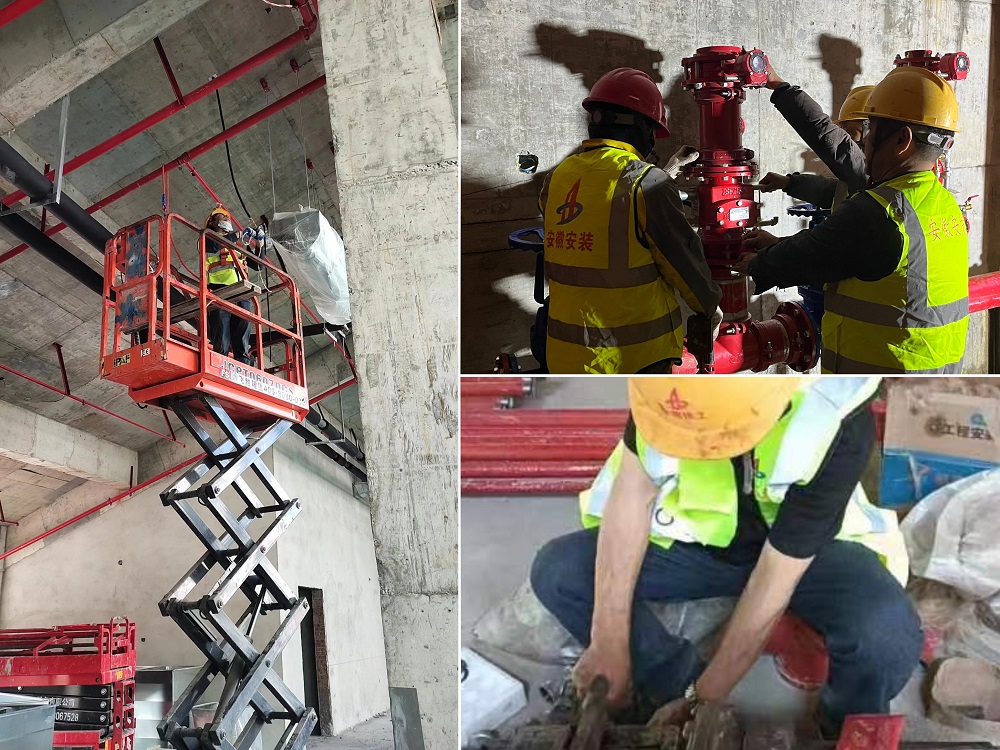 圖為電氣班組穿線、消防班組濕式報警閥安裝、消防班組管道預(yù)制