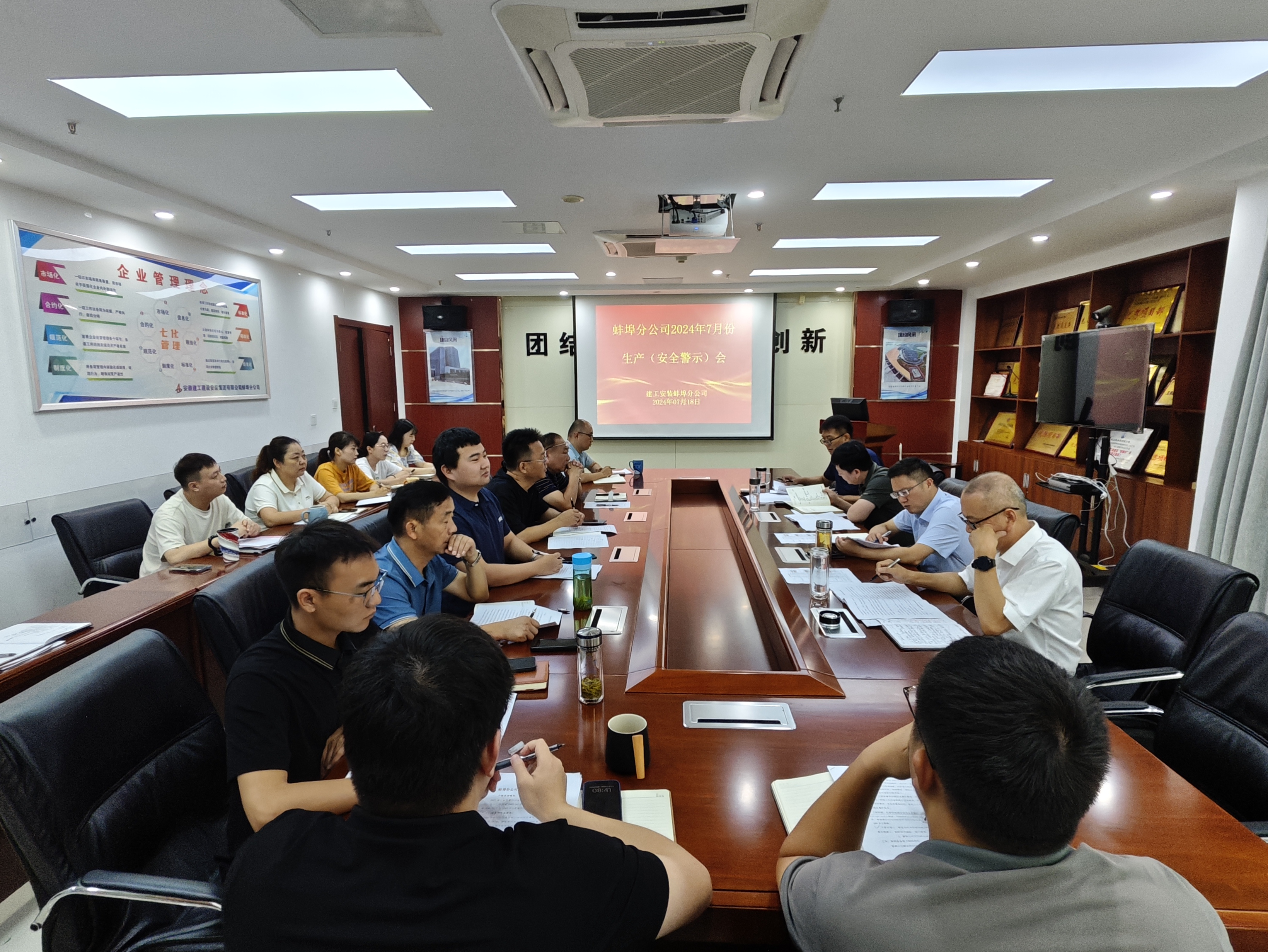 7月18日上午,蚌埠分公司組織召開7月份生產(chǎn)(安全警示)會,分公司領(lǐng)導(dǎo)班子、所屬各項目經(jīng)理、機關(guān)各部門負(fù)責(zé)人及工程管理部全體員工參加會議,會議由副經(jīng)理張斌主持。