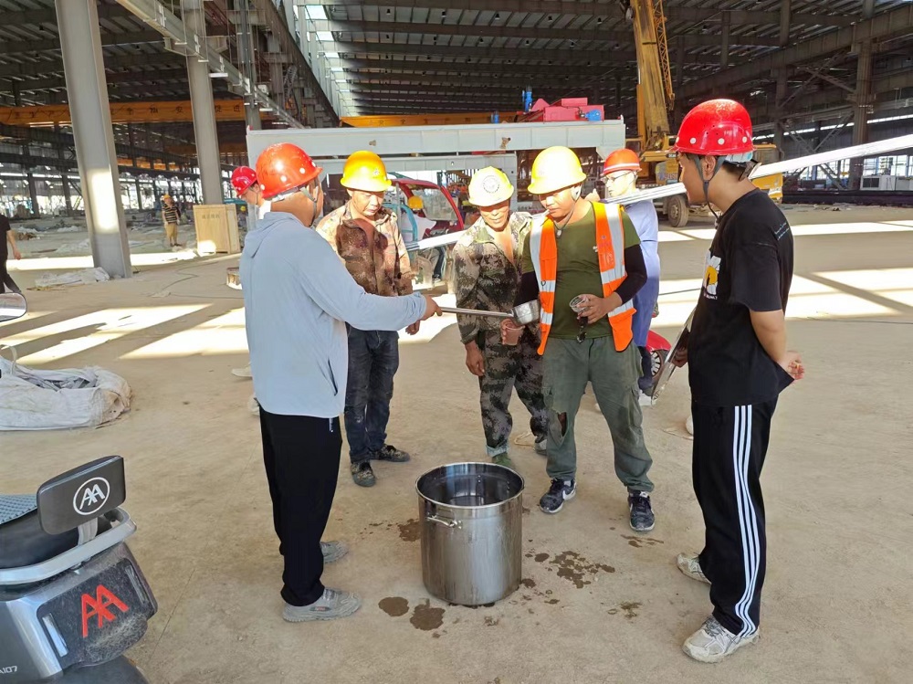 目前項(xiàng)目施工現(xiàn)場(chǎng)100多名工人各司其職,進(jìn)行2#重鋼車(chē)間廠房橋架、消防系統(tǒng)、氣體管道、裝修、圍護(hù)結(jié)構(gòu)、門(mén)窗、通風(fēng)氣樓、設(shè)備基礎(chǔ)等安裝。同時(shí)為應(yīng)對(duì)持續(xù)高溫天氣,項(xiàng)目部合理安排作業(yè)時(shí)間,做好后勤保障工作,現(xiàn)場(chǎng)不間斷巡查時(shí)刻關(guān)注工人狀態(tài),在確保施工人員健康和安全的前提下,全力以赴加快廠房項(xiàng)目建設(shè)進(jìn)度,預(yù)計(jì)7月26日前完成大部分項(xiàng)目?jī)?nèi)容的施工任務(wù)。