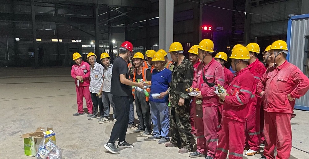 夜晚加班,給施工人員送去食物飲品補(bǔ)充能量