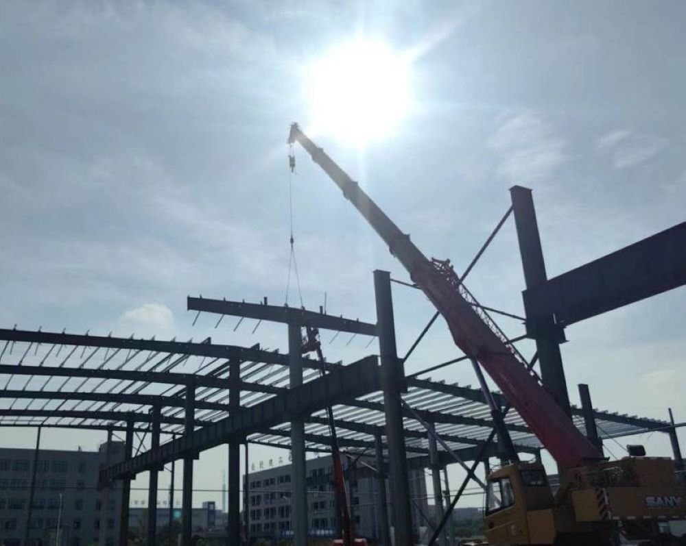 目前1-18軸鋼柱已全部安裝完成,1-6軸柱撐、鋼梁、屋面檁條已安裝結(jié)束。同時應(yīng)對持續(xù)高溫天氣,項(xiàng)目部合理安排作業(yè)時間,施工人員分工協(xié)作,錨定節(jié)點(diǎn)目標(biāo),全力以赴趕工期、搶進(jìn)度。預(yù)計9月底完成建工鋼構(gòu)智能制造基地4#廠房項(xiàng)目全部工程量。
